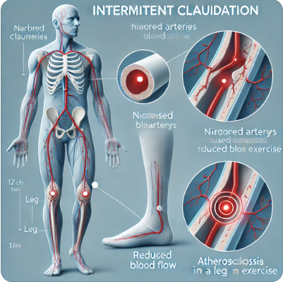 간헐적파행은 주로 말초동맥질환(PAD)에 의해 발생합니다. 이는 다리로 가는 동맥이 좁아지거나 막혀서 혈액 순환이 원활하지 않아 근육으로 충분한 산소가 공급되지 않는 것이 원인입니다. 주로 흡연, 고혈압, 고지혈증, 당뇨병 등 혈관질환 위험 인자가 복합적으로 작용하여 발생합니다.