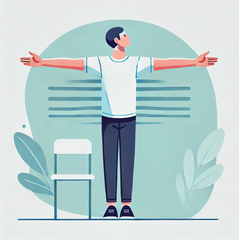 - 양팔을 뒤로 뻗으며 가슴을 열어줍니다.