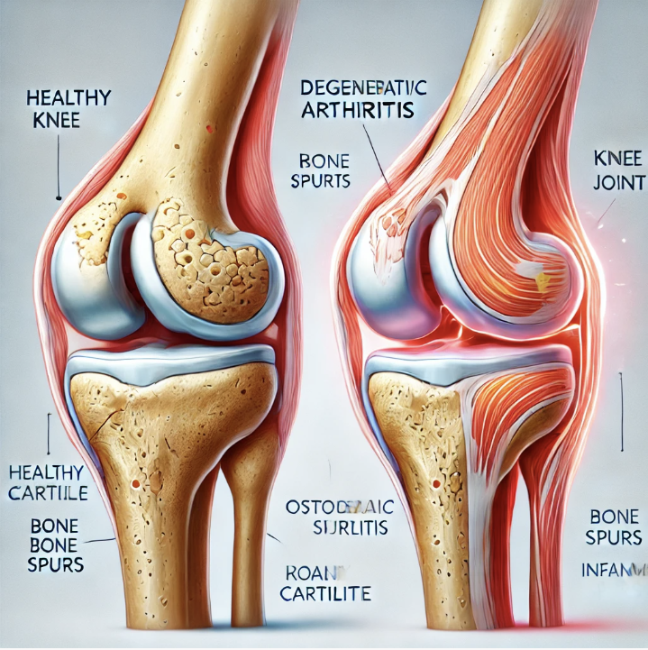 퇴행성 관절염(골관절염, Osteoarthritis)은 관절을 보호하는 연골이 점진적으로 손상되면서 염증과 통증을 유발하는 질환입니다. 노화가 주요 원인이지만, 유전적 요인, 비만, 관절 과사용, 외상 등도 퇴행성 관절염을 촉진할 수 있습니다.